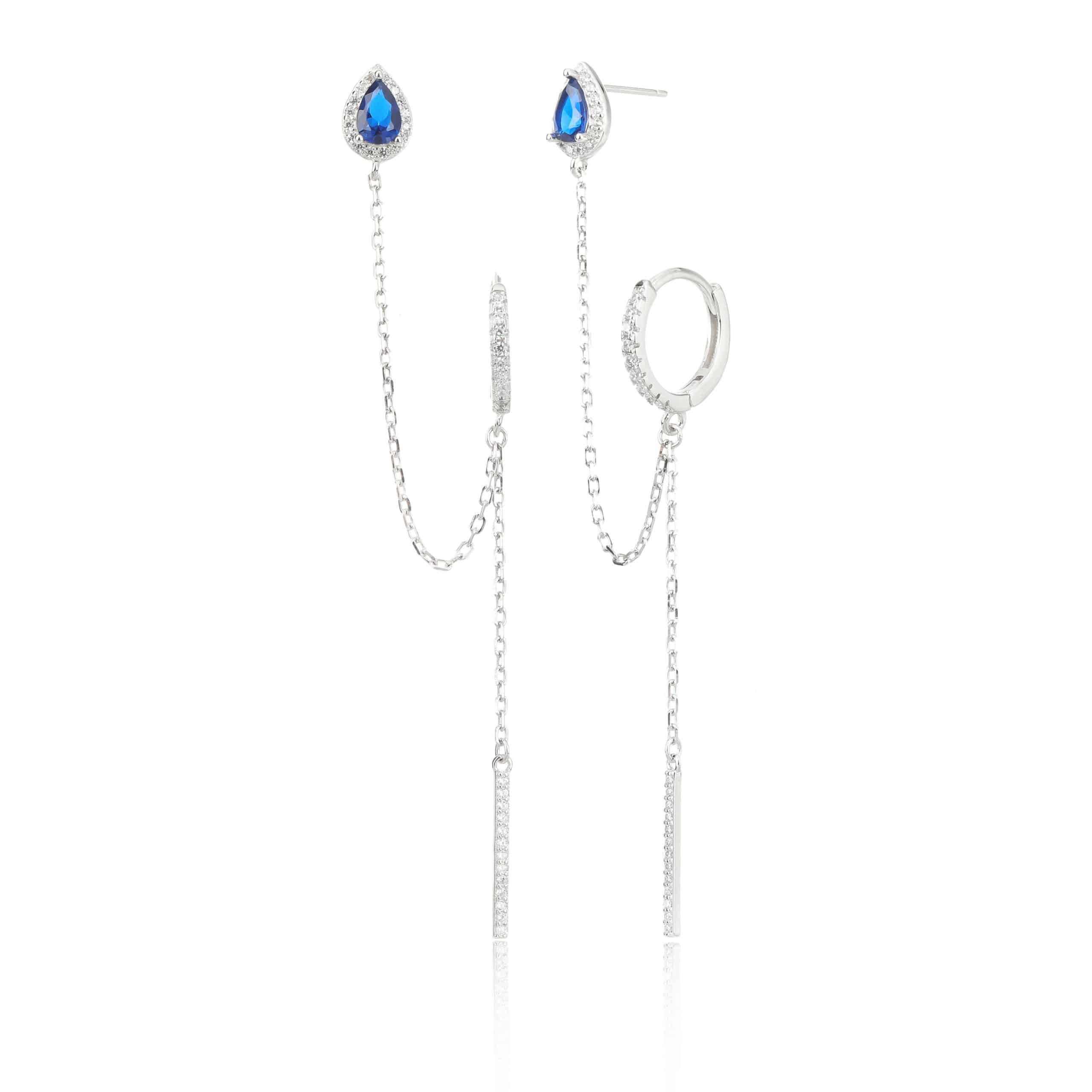 עגילי כסף 925 עם ציפוי רודיום עם אבנים שחורות מיוחדות